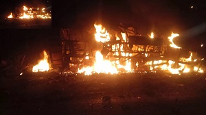 BIG BREAKING दर्दनाक सड़क हादसा…डंपर से टकराई बस… फिर लगी आग… 13 की मौत…