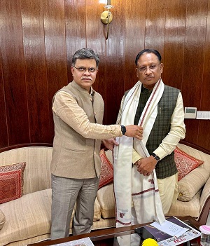 रायपुर। आवास और शहरी विकास निगम (हुडको) के अध्यक्ष श्री संजय कुलश्रेष्ठ ने मुख्यमंत्री विष्णुदेव साय से छत्तीसगढ़ सदन, नई दिल्ली में आज सौजन्य मुलाकात की। इस दौरान उन्होंने हुडको से संबंधित गतिविधियों के संबंध में मुख्यमंत्री से चर्चा भी की।