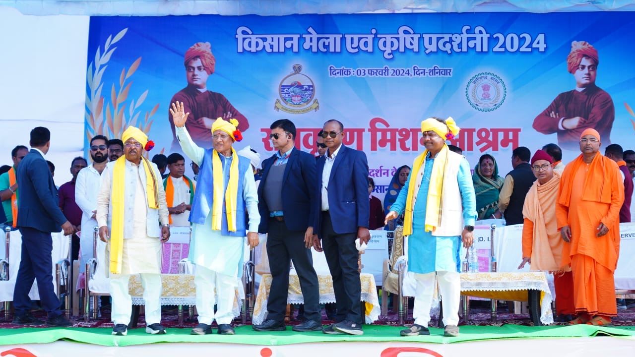 मुख्यमंत्री विष्णु देव साय के नेतृत्व में गठित छत्तीसगढ़ द्वारा मात्र पौने दो माह की अल्पावधि में राज्य के किसानों के हित में लिए गए फैसले से राज्य भर के किसान बेहद खुश है। प्रति एकड़ 21 क्विंटल धान की समर्थन मूल्य पर खरीदी तथा 3100 रूपए क्विंटल धान की कीमत मिलने को लेकर जगह-जगह किसान संगठनों एवं समूहों द्वारा मुख्यमंत्री विष्णु देव साय और उनके मंत्रिपरिषद के सहयोगी मंत्रीगणों का स्वागत अभिनंदन किया जा रहा है। किसान समूहों द्वारा मुख्यमंत्री के स्वागत अभिनंदन का ऐसा ही नजारा आज राज्य के सुदूर वनांचल के जिला मुख्यालय नारायणपुर में देखने को मिला। मुख्यमंत्री विष्णु देव साय पहली बार नारायणपुर के रामकृष्ण मिशन आश्रम मैदान में आयोजित कृषि मेला एवं कृषि प्रदर्शनी में बतौर मुख्य अतिथि शामिल होने पहुंचे थे।