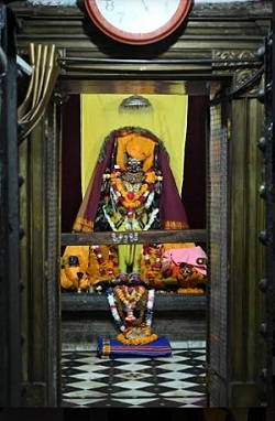 गेंदा फूला से सजाया मंदिर का गर्भगृह