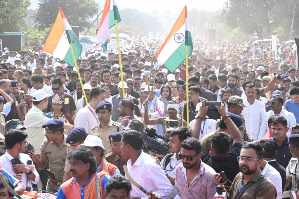रायपुर. भगवान बिरसा मुंडा ’’माटी के वीर पदयात्रा’’ आज जशपुर के पुरना नगर मैदान से हुई शुरू। पदयात्रा में केंद्रीय युवा कार्यक्रम, खेल, श्रम एवं रोजगार मंत्री डॉ. मनसुख मांडविया और मुख्यमंत्री श्री विष्णुदेव साय 10 हज़ार से अधिक माय भारत युवा स्वयंसेवकों के साथ पदयात्रा कर रहे हैं। माटी के वीर पदयात्रा में उपमुख्यमंत्री श्री अरुण साव, वित्त, आवास एवं पर्यावरण, योजना आर्थिक एवं सांख्यिकी तथा जिले के प्रभारी मंत्री श्री ओ.पी. चौधरी, आदिम जाति तथा अनुसूचित जाति, पिछड़ा वर्ग एवं अल्पसंख्यक विकास विभाग, कृषि विकास एवं कृषि कल्याण तथा जैव प्रौद्योगिक विभाग मंत्री श्री रामविचार नेताम, खेल एवं युवा कल्याण, राजस्व एवं आपदा प्रबंधन विभाग के मंत्री श्री टंक राम वर्मा, महिला एवं बाल विकास मंत्री श्रीमती लक्ष्मी राजवाड़े, सांसद श्री राधेश्याम राठिया, सरगुजा क्षेत्र विकास प्राधिकरण की उपाध्यक्ष एवं विधायक श्रीमती गोमती साय, विधायक श्रीमती रायमुनी भगत, विधायक रामकुमार टोप्पो, विधायक सुशांत शुक्ला, राज्य महिला आयोग की सदस्य श्रीमती प्रियम्वदा सिंह जूदेव शामिल हैं। पदयात्रा विभिन्न मार्गों से गुजरते हुए समापन रणजीता स्टेडियम में होगा। भारत माता, छत्तीसगढ़ महतारी और भगवान बिरसा मुंडा की वेशभूषा धारण किए युवा पदयात्रा की शोभा बढ़ा रहे हैं।