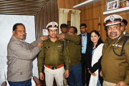 जशपुरनगर । मुख्यमंत्री विष्णुदेव साय ने आज बगिया स्थित अपने निजी निवास में जशपुर के पुलिस अधीक्षक शशिमोहन सिंह के वरिष्ठ पुलिस अधीक्षक (एसएसपी) के पद पर पदोन्नत होने पर पीपींग सेरेमनी में बैच एवं स्टार पहनाया। कमिश्नर नरेन्द्र सिंह दुग्गा, आईजी अंकित गर्ग, कलेक्टर रोहित व्यास, जिला पंचायत सीईओ अभिषेक कुमार सहित उनकी धर्मपत्नी रेखा सिंह एवं बेटे रिभु समर्थ सिंह इस अवसर पर उनके साथ मौजूद थे।