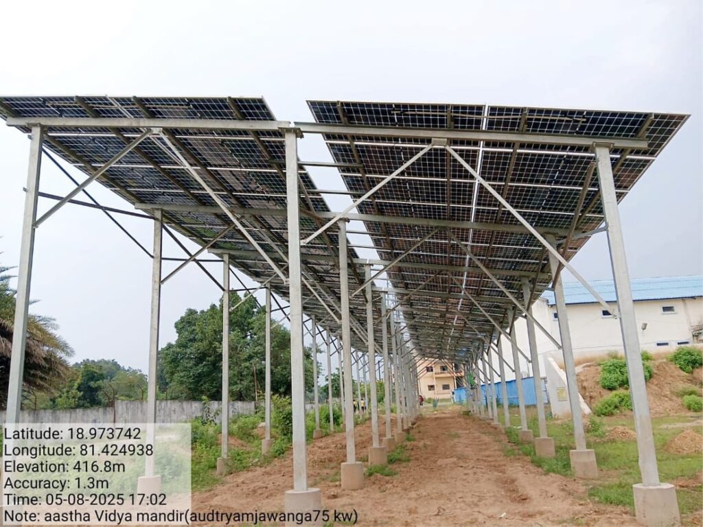 आस्था विद्या मंदिर में स्थापित यह सोलर प्लांट तकनीकी नवाचार का एक शानदार उदाहरण है। हॉट-डिप गैल्वनाइज्ड हेवी-ड्यूटी स्ट्रक्चर पर बना यह प्लांट न सिर्फ मजबूत और टिकाऊ है, बल्कि बहुउपयोगी भी है। सोलर पैनल्स के नीचे का स्थान वाहनों की पार्किंग के लिए इस्तेमाल हो सकता है या फिर सामुदायिक आयोजनों, जैसे सांस्कृतिक कार्यक्रम, खेलकूद या सामाजिक सभाओं के लिए एक छायादार जगह बन सकता है। यह संरचना मौसम की कठिन परिस्थितियों से बचने के लिए खास तौर पर तैयार की गई है, जिससे यह बिना किसी बड़े रखरखाव के सालों तक अपनी सेवा देता रहेगा।