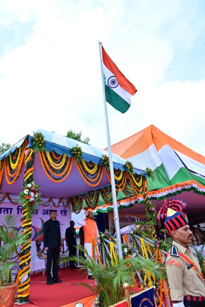 राजधानी रायपुर के पुलिस परेड ग्राउंड में स्वतंत्रता दिवस का आयोजन पूरे हर्षाेल्लास और गरिमा के साथ संपन्न हुआ। मुख्यमंत्री श्री विष्णुदेव साय ने सुबह 9 बजे ध्वजारोहण किया और परेड की सलामी ली। मुख्यमंत्री ने प्रदेश की जनता के नाम अपने संदेश का वाचन भी किया।