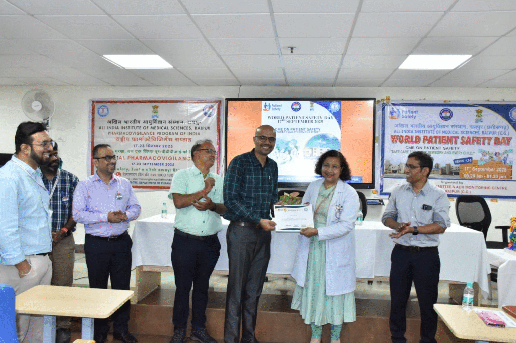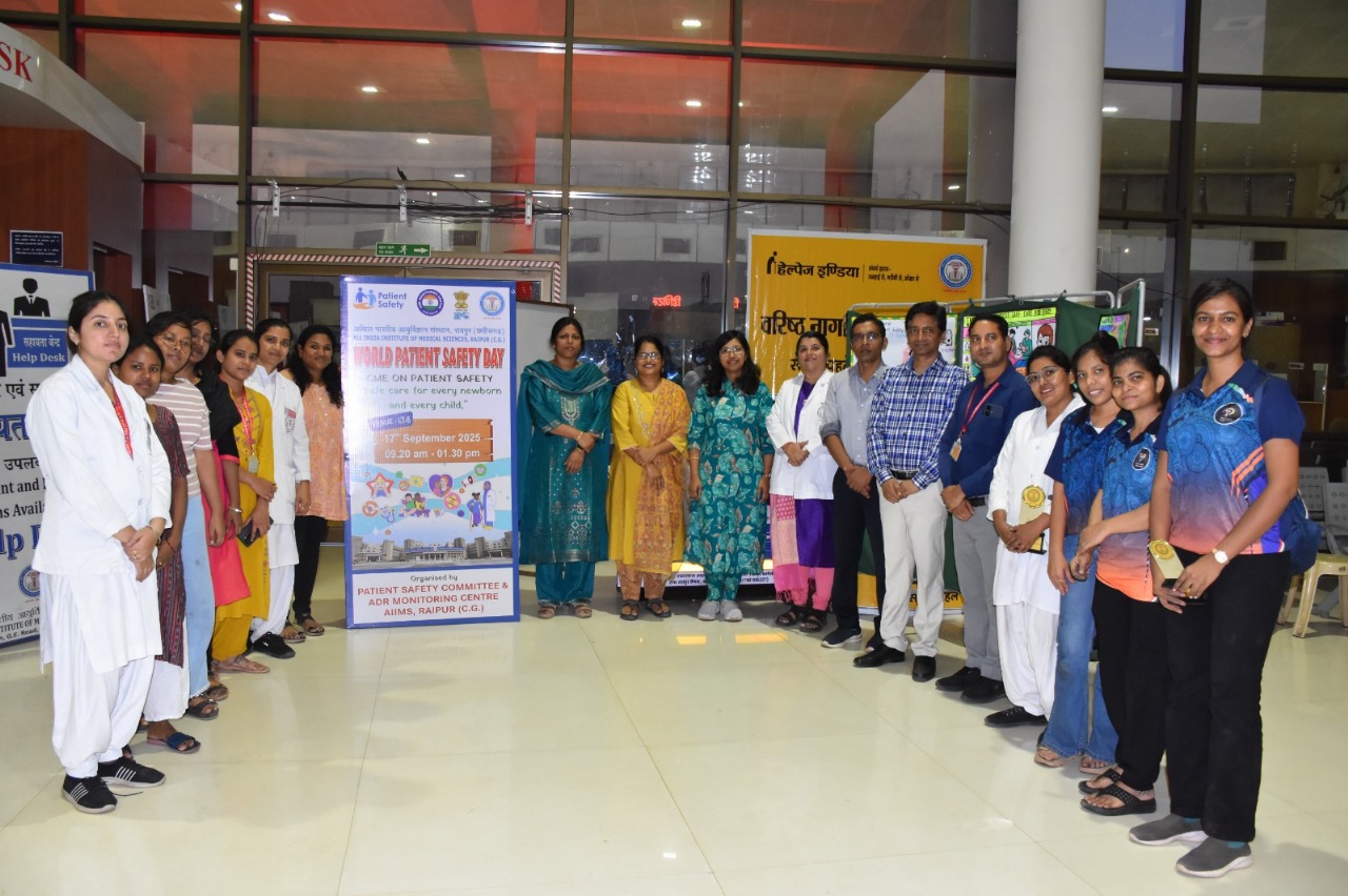 अखिल भारतीय आयुर्विज्ञान संस्थान (एम्स) रायपुर में विश्व रोगी सुरक्षा दिवस के अवसर पर एक दिवसीय सतत चिकित्सा शिक्षा (सीएमई) कार्यक्रम का आयोजन किया गया। इस कार्यक्रम का मुख्य फोकस “हर नवजात और हर बच्चे के लिए सुरक्षित देखभाल” तथा “आपकी सुरक्षा, बस एक क्लिक की दूरी पर: भारतीय फार्माकोविजिलेंस कार्यक्रम (PvPI) को रिपोर्ट करें” पर केंद्रित रहा।