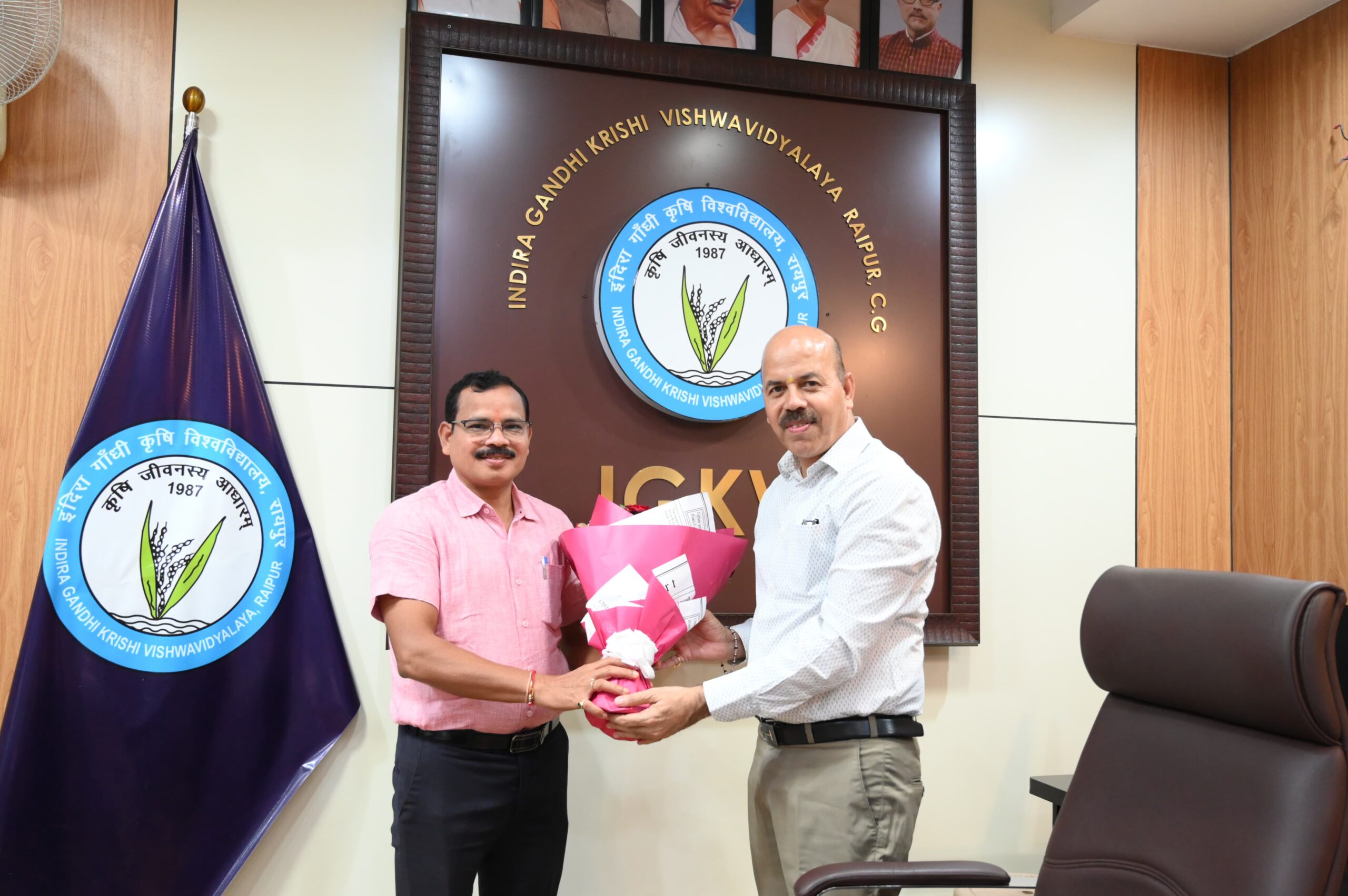 इंदिरा गांधी कृषि विश्वविद्यालय के नवनियुक्त कुलसचिव श्री कपिलदेव दीपक ने आज पदभार ग्रहण किया. उन्होंने प्रभारी कुलसचिव डॉ सी पी खरे से कुलसचिव पद का प्रभार लिया. पदभार ग्रहण करने के उपरांत श्री दीपक ने कृषि विश्वविद्यालय के कुलपति डॉ गिरीश चंदेल से सौजन्य मुलाकात की. डॉ चंदेल ने श्री दीपक को उनके सफल कार्यकाल हेतु शुभकामनाएं दी. श्री कपिल देव दीपक ने विश्वविद्यालय के अधिकारियों से संवाद कर विश्वविद्यालय की कार्यप्रणाली एवं गतिविधियों के बारे में जानकारी प्राप्त की. इस अवसर पर उप कुलसचिव डॉ यमन देवांगन, डॉ श्रीकांत चितले, डॉ विजय सोनी सहित विश्वविद्यालय प्रशासन के वरिष्ठ अधिकारी उपस्थित थे. उल्लेखनीय है कि श्री कपिल देव दीपक मूलतः कृषि विभाग में संयुक्त संचालक के पद पर पदस्थ है.