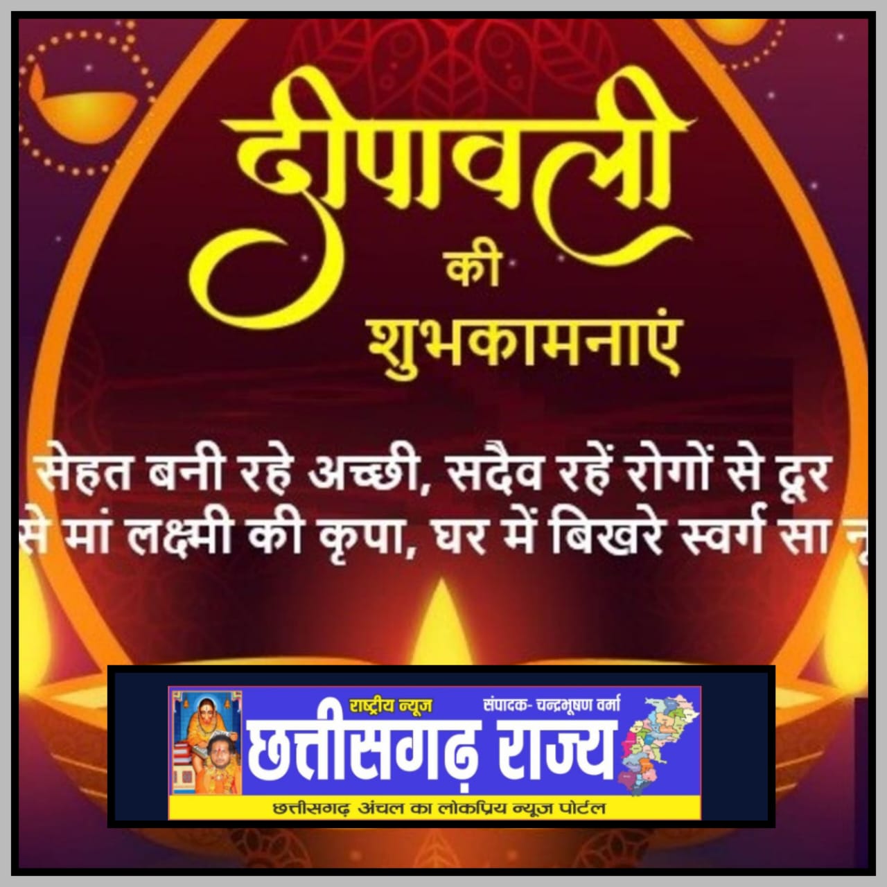 छहत्तीसगढ़ राज्य न्यूज़ पोर्टल परिवार की ओर से आप सभी पाठकों को दीपावली की ढेरों शुभकामनाएँ!