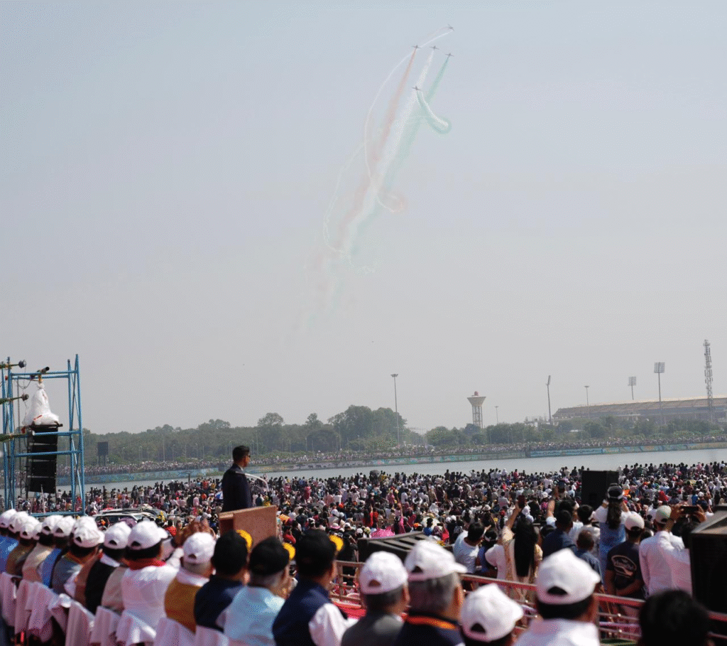 माननीय उपराष्ट्रपति श्री सी. पी. राधाकृष्णन ने आज नवा रायपुर, छत्तीसगढ़ में लोगों के साथ भारतीय वायु सेना (आईएएफ) की प्रसिद्ध सूर्यकिरण एरोबेटिक टीम (स्कैट) द्वारा किए गए शानदार एयर शो को देखा। कौशल और सटीकता के इस मनमोहक प्रदर्शन ने देशभक्ति का माहौल बनाया और छत्तीसगढ़ रजत महोत्सव समारोह के हिस्से के रूप में राज्य के गठन की 25वीं वर्षगांठ को चिह्नित किया।