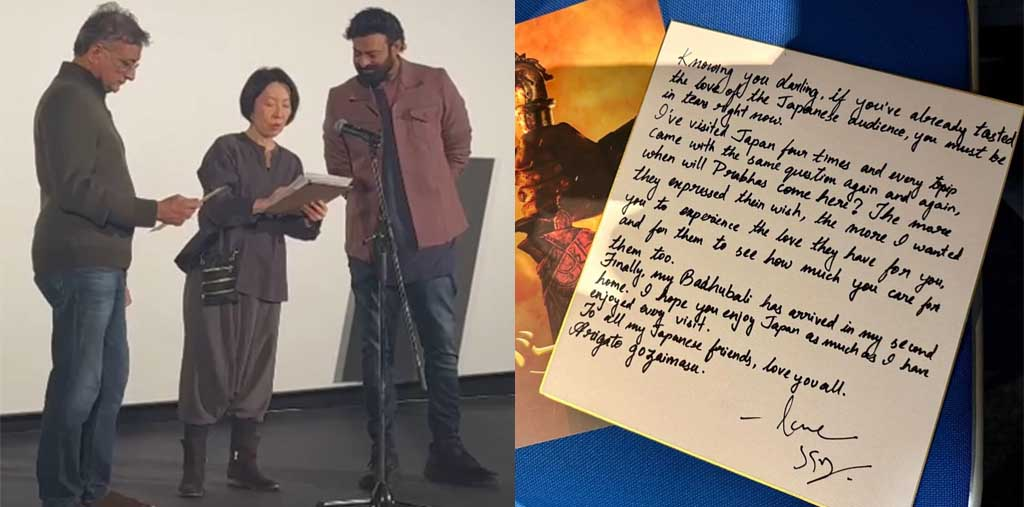 फिल्म की रिलीज़ से पहले प्रभास जापान गए, जहाँ एक खास स्क्रीनिंग रखी गई थी। यह स्क्रीनिंग एक बड़े जश्न में बदल गई। पूरा हॉल उन फैंस से भरा था जो प्रभास को देखने और बाहुबली की कहानी को बड़े पर्दे पर महसूस करने के लिए बहुत उत्साहित थे। स्क्रीनिंग के बाद प्रभास ने सभी फैंस से बहुत प्यार से मुलाकात की और उनके लिए कुछ यादगार पल बना दिए। उन्होंने सोशल मीडिया पर भी एक नोट शेयर किया, जो डायरेक्टर एस.एस. राजामौली ने उन्हें जापान पहुंचने पर दिया था। इस नोट ने इस पल को और भी खास बना दिया।