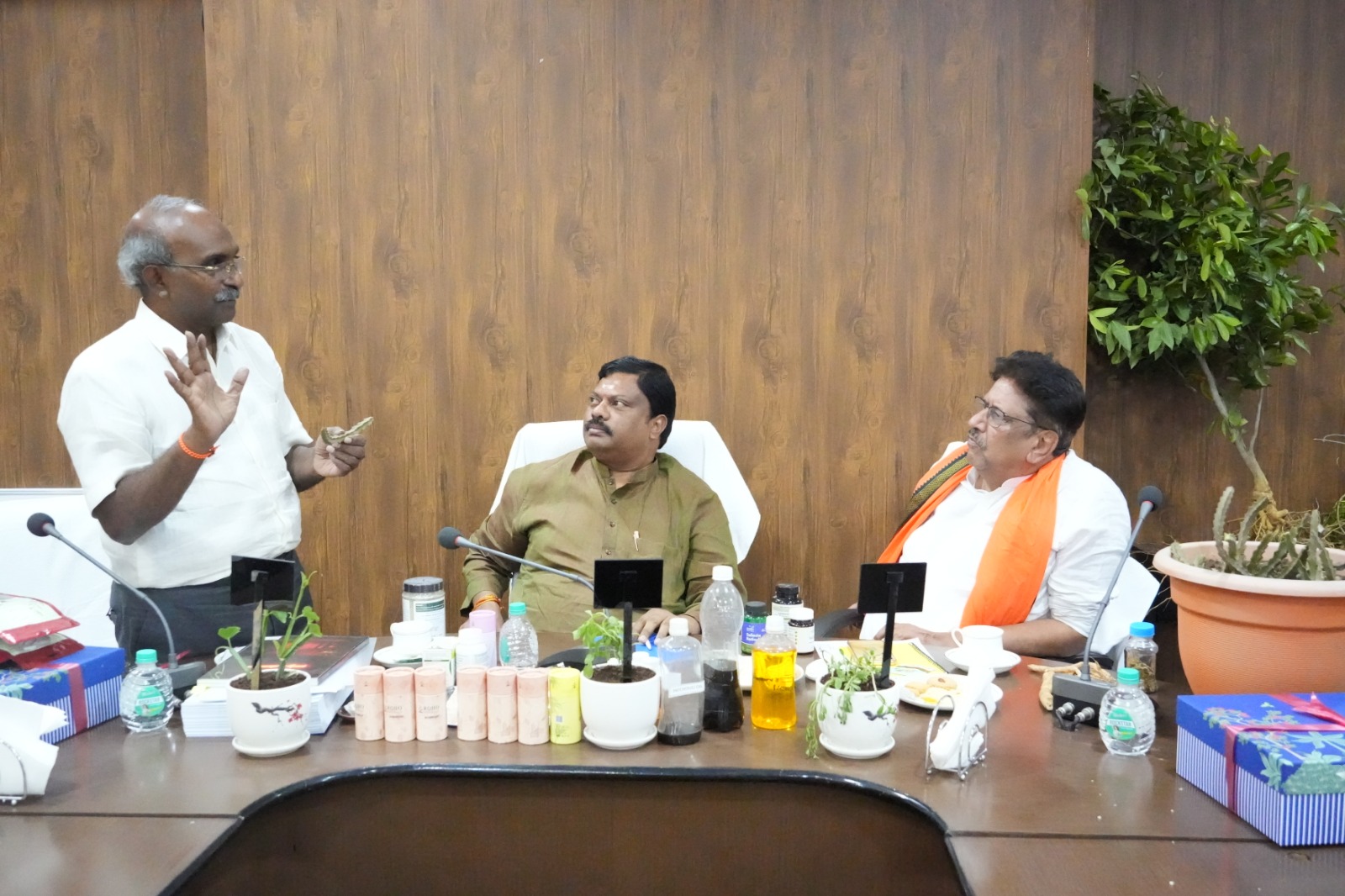 उपाध्यक्ष अंजय शुक्ला ने बस्तर को औषधीय पौधों के माध्यम से दुनिया का सबसे समृद्ध क्षेत्र बनाने का विजन साझा किया, जिसे साकार करने के लिए बोर्ड ने त्वरित कार्य योजना पर सहमति जताई । इस योजना के प्रथम चरण में बस्तर क्षेत्र में पहले से मौजूद पॉम ट्री और नीलगिरी के प्लांटेशन में औषधीय पौधों की ‘मल्टीक्रॉपिंग’ के जरिए तत्काल कार्य शुरू किया जाएगा । बैठक में नारायण संकल्प फाउंडेशन से सीमा गुप्ता, एन.डी. मेमोरियल फाउंडेशन से शालीभद्र मुथा और क्रिस्टल एजुकेशन एवं रिसर्च सोसायटी से रीनू छाबड़ा के साथ-साथ बोर्ड के तकनीकी सलाहकार और कर्मचारी भी उपस्थित रहे ।