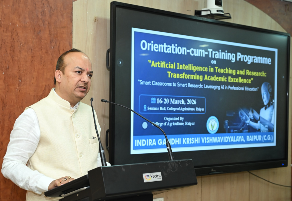 प्रशिक्षण कार्यक्रम का शुभारंभ करते हुए इंदिरा गांधी कृषि विश्वविद्यालय के कुलपति डॉ. गिरीश चंदेल ने कहा कि विगत कुछ वर्षों में हमारे जीवन में आर्टिफिशियल इंटेलिजेंस का उपयोग निरंतर बढ़ता जा रहा है और अब यह हमारी सामान्य दिनचर्या का एक हिस्सा बन गया है। उन्होंने कहा विशेषकर उच्च शिक्षा अनुसंधान एवं प्रौद्योगिकी विकास में आर्टिफिशियल इंटेलिजेंस ने अहम योगदान दिया है। यह शिक्षण, शोध और अकादमिक कार्यों को अधिक प्रभावी बना रही है। डॉ. चंदेल ने कहा कि कृषि शिक्षा एवं अनुसंधान के क्षेत्र में भी आर्टिफिशियल इंटेलिजेंस महत्वपूर्ण भूमिका निभा सकता है। कृषि शिक्षा जैसे पेशेवर क्षेत्रों में ए आई का उपयोग शिक्षण गुणवत्ता, नवाचार और शोध को बेहतर बनाने के लिए अनिवार्य हो गया है।