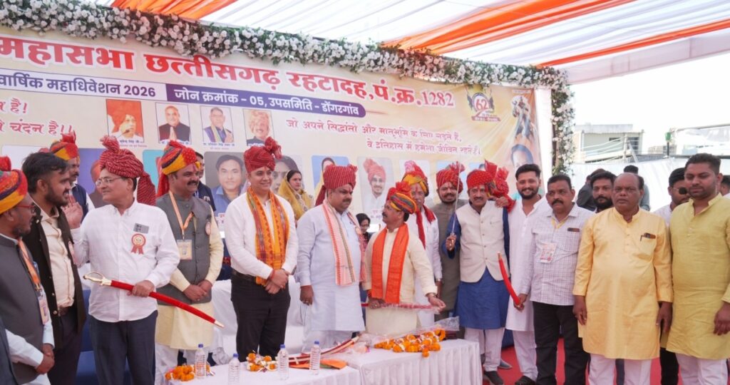 रायपुर – राजपूत क्षत्रिय महासभा छत्तीसगढ़ का दो दिवसीय 62 वां वार्षिक महाधिवेशन राजनांदगांव जोन क्रमांक 5 के उप समिति डोंगरगांव में ऐतिहासिक रूप से, अति उल्लासपूर्वक, गरिमामई रूप से संपन्न हुआ।। अधिवेशन कार्यक्रम में मुख्य अतिथि स्कूल शिक्षा मंत्री एवं राजनांदगांव जिले के प्रभारी मंत्री माननीय गजेंद्र यादव जी द्वारा 30 लाख सहयोग राशि की घोषणा की गई । कार्यक्रम की अध्यक्षता महासभा के अध्यक्ष ठाकुर बजरंग सिंह बैस द्वारा किया गया । अति विशिष्ट अतिथि के रूप में राजनांदगांव के पूर्व सांसद मा. अभिषेक सिंह जी, हस्तशिल्प विकास कला बोर्ड की अध्यक्ष राज्य मंत्री दर्जा प्राप्त श्रीमती शालिनी राजपूत जी, राजनांदगांव भाजपा जिला अध्यक्ष माननीय कोमल राजपूत जी, डोंगरगांव के स्थानीय जिला पंचायत, जनपद सदस्य, नगर पालिका के अंजू त्रिपाठी जी उपस्थित रहे। कार्यक्रम में महासभा के हमारे पूर्व अध्यक्ष एवं पूर्व विधायक भूपेंद्र सिंह चौहान जी, ठाकुर उजियार सिंह पवार जी, ठाकुर होरी सिंह डौड़ जी की उपस्थिति कार्यक्रम का गौरव बढ़ाया।। अधिवेशन स्थल मंच से सम्माननीय जनों के विचारों में यूजीसी बिल का विरोध तथा हमारे महासभा के संस्थापक सदस्यों की सराहना तथा केंद्रीय कार्यकारिणी निर्णय की पुस्तिका प्रकाशन एवं महासभा के लिए बहुत ही महती योजना भूमि क्रय के संबंध में चर्चा हुई। राजपूत क्षत्रिय महासभा के प्रचार सचिव डॉ. जितेंद्र सिंह ठाकुर ने बताया की कार्यक्रम शांतिपूर्वक संपन्न हुआ।