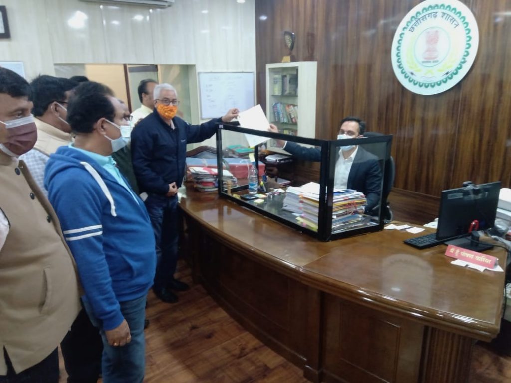 नवा रायपुर। छत्तीसगढ़ कर्मचारी अधिकारी फेडरेशन के आह्वान पर आज प्रदेश भर में अपने मौलिक अधिकारों के प्रति सरकार का ध्यान आकृष्ट करने समस्त जिला एवं तहसील मुख्यालय में छत्तीसगढ़ कर्मचारी अधिकारी फेडरेशन के पदाधिकारियों ने मुख्यमंत्री के नाम 2-सूत्रीय ज्ञापन जिला कलेक्टर को एवं ब्लॉक में एसडीएम/तहसीलदार को सौंपा गया। फेडरेशन के प्रांतीय संयोजक कमल वर्मा, प्रमुख प्रवक्ता विजय झा व प्रवक्ता बीपी शर्मा ने विज्ञप्ति जारी कर बताया कि प्रदेश भर में फेडरेशन के जिला संयोजक एवम् ब्लॉक/तहसील के प्रतिनिधियों ने मुख्यमंत्री के नाम ज्ञापन सौंपते हुए कर्मचारियों की भावना से मुख्यमंत्री कार्यालय को अवगत कराने कलेक्टर/एसडीएम से किए। मंत्रालय एवम् विभागाध्यक्ष की ओर से प्रांतीय संयोजक कमल वर्मा के नेतृत्व में मंत्रालय में मुख्य सचिव कार्यालय में पदस्थ ओएसडी पूनम सोनी को ज्ञापन सौंपा गया। रायपुर कलेक्टर को विजय झा के नेतृत्व में ज्ञापन सौंपा गया। उन्होंने बताया कि 28 और 29 जनवरी 2022 को सभी कर्मचारी अधिकारी मौलिक अधिकार हनन के विरोध में काली पट्टी लगाकर कार्यस्थल पर विरोध प्रदर्शन करेंगे। प्रांतीय निर्णय अनुसार 28 जनवरी से 31 जनवरी 2022 तक प्रत्येक कर्मचारी-अधिकारी