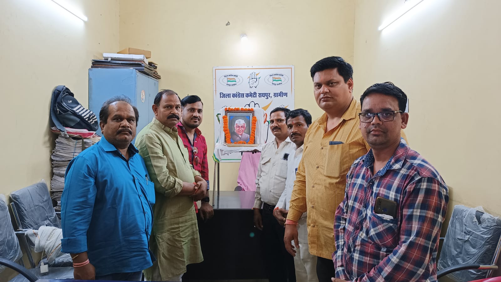 जिला कांग्रेस कमेटी रायपुर ग्रामीण के कार्यालय में आज 27 मई को देश के प्रथम प्रधानमंत्री भारत रत्न पंडित जवाहरलाल नेहरू जी की 58 वीं पुण्यतिथि पर श्रद्धा पूर्वक श्रद्धांजलि एवं पुष्पांजलि अर्पित की गई । इस अवसर पर भारत देश के इस अभूतपूर्व शख्सियत के योगदान एवं कार्यों को याद किया गया। पुष्पांजलि कार्यक्रम में जिला अध्यक्ष उधोराम वर्मा ,देवेंद्र मिश्रा,अभिषेक शुक्ला, हिमांशु दीक्षित,चोवाराम साहू, डॉ.श्रवण निषाद,जागेश्वर कुर्रे, घनश्याम वर्मा, कन्हैया यादव, मंसाराम निर्मलकर, सुनीता साहू एवं अनेक पदाधिकारी, कार्यकर्ता उपस्थित रहे।