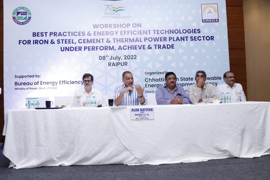 मुख्यमंत्री की पहल पर उपरोक्त उपलब्धि को अन्य उद्योगों से साझा करने की दृष्टि से श्री आलोक कटियार, मुख्य कार्यपालन अधिकारी, (क्रेडा) की अध्यक्षता में दिनांक 08.07.2022 को रायपुर में वर्कशॉप एवं प्रेस कॉन्फ्रेन्स का आयोजन किया गया। उक्त वर्कशॉप में मुख्य रूप से एल्यूमिनियम, आयरन एण्ड स्टील, थर्मल पॉवर प्लांट एवं सीमेंट उद्योगों के प्रतिनिधि तथा डिज़ीटल एवं प्रिन्ट मीडिया के प्रतिनिधि उपस्थित रहे। श्री कटियार द्वारा राज्य में हुई 2.198 मिलियन टन ऑफ ऑयल इक्यूईवेलेंट (MTOE) ऊर्जा की बचत की जानकारी अन्य औद्योगिक संस्थानों के प्रतिनिधियों एवं प्रेस कर्मियों से साझा की गई। वर्कशॉप में उपस्थित आयरन एण्ड स्टील, थर्मल पॉवर प्लांट एवं सीमेंट उद्योगों के प्रतिनिधियों द्वारा भी अपने संस्थानों में ऊर्जा की बचत हेतु किये गए प्रयासों एवं अपनाये गए तकनीकों के बारे में बताया गया।