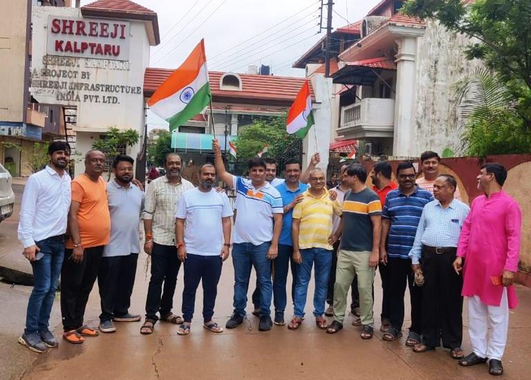अमलीडीह की कल्पतरू सोसायटी में बाजे-गाजे के साथ घर-घर फहरा तिरंगा-रायपुर शहर के डॉ. राजेन्द्र प्रसाद वार्ड की श्रीजी कल्पतरू सोसायटी में लोगों ने आज गाजे-बाजे के साथ घरों में तिरंगा झण्डा फहराया। सोसायटी के सदस्य समूह में ढोल बजाते हुए निकले और लोगों को तिरंगे झण्डे बांटे। सभी सदस्यों ने एक दूसरे को आजादी के अमृत महोत्सव की बधाई और शुभकामनाएं दी। आजादी के जयकारे लगाते हुए देश-भक्ति का माहौल बनाया। सोसायटी के सदस्यों ने पास ही के अमलीडीह गांव में जाकर ग्राम वासियों को भी झण्डे बांटे। सोसायटी के सदस्य एम.जे.सफी ने कहा कि देश-भक्ति के इस अभियान में सभी सदस्यों और नागरिकांे की सहभागिता, देश के प्रति हमारे प्रेम और समर्पण को दर्शाती है, वहीं एक अन्य सदस्य संजय पाटिल ने बताया कि सुबह-सुबह जब ढोल- नगाड़े की आवाज कानों में पड़ी तो ऐसा लगा कि कॉलोनी में कोई उत्सव मनाया जा रहा है। सभी के घरों पर लहराते तिरंगों और लोगों के हाथों में तिरंगा झण्डा देखकर मन प्रसन्न हो गया। सोसायटी के ही अन्य सदस्यों श्री वरूण गंजीर प्रमोद सुंदरानी, हिमांशु सहानी, दुश्यन्त ठाकुर, अब्राहम लुकास आदि ने भी आजादी के इस अमृत महोत्सव पर स्वतंत्रता सेनानियों और बलिदानियों को याद किया। सभी ने कहा कि यह उत्सव सभी भारतीयों द्वारा आजादी के लिए अपना सब कुछ बलिदान करने वाले शहीदों को सच्ची श्रद्वांजली है।