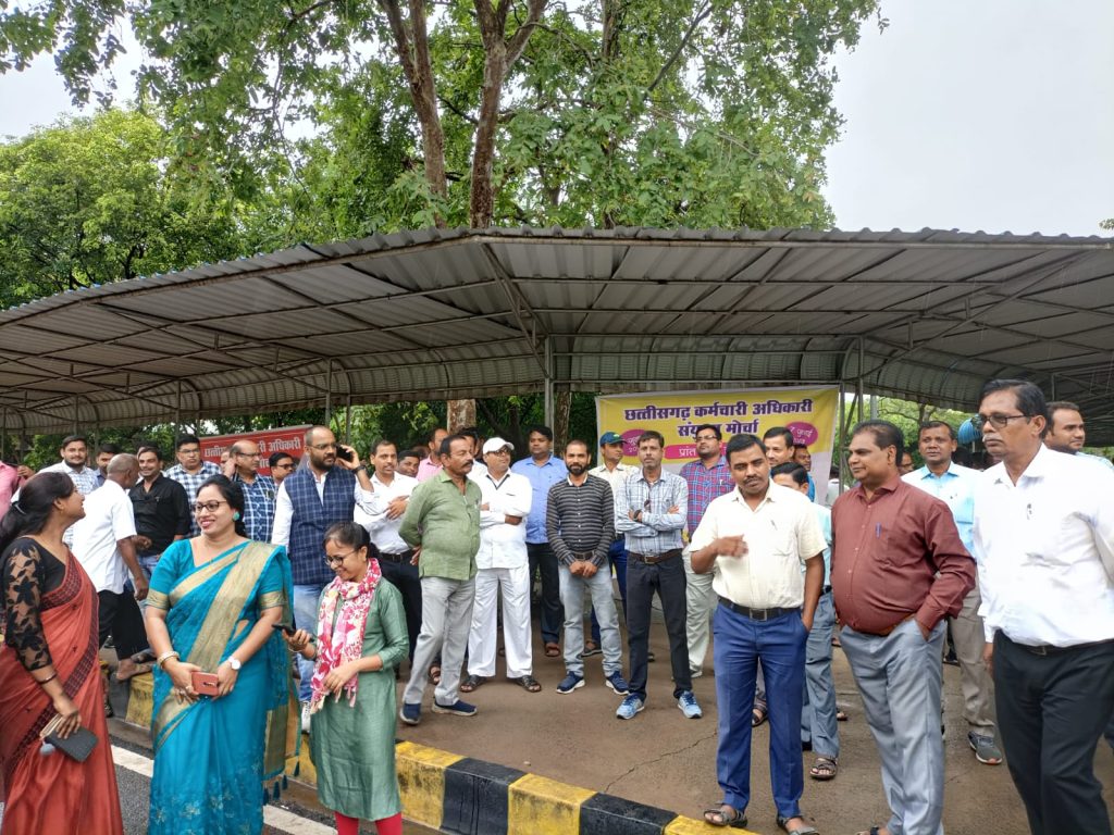 छत्तीसगढ़ कर्मचारी अधिकारी संयुक्त मोर्चा संघ के बैनरतले नारेबाजी करते हुए प्रदर्शन करते हुए नजर आ रहे है। आपको बता दें कि प्रदेश भर में प्रदर्शन हो रहा है कलेक्टर, ब्लॉक, तहसील कार्यालय में ताला लगा हुआ है। प्रदर्शन के दौरान बड़ी संख्या में अधिकारी कर्मचारी प्रदर्शन स्थल पर जुटे रहे।