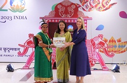 रायपुर. बस्तर का मिलेट विशेषकर रागी से बने लड्डू जी-20 में आये राष्ट्राध्यक्षों और उनकी पत्नी को काफ़ी भाया। अवसर था जी-20 देशों में भाग लेने वाले प्रमुखों की प्रथम महिलाओं और जीवनसाथियों को 9 सितंबर को पूसा रोड पर आईएआरआई परिसर में एक कृषि प्रदर्शनी के लिए विशेष निमंत्रण दिया गया। छत्तीसगढ़ के बस्तर से आयी महिलाओं ने मिलेट से बनने वाले पकवानों पर विशेष तैयारियां की थी। बस्तर ज़िले के बास्तानर ब्लॉक से आयी संगीता कश्यप ने बताया कि उन्होंने मिलेट के लड्डू, रागी कुकीज़, रागी चकली, कोदो-कुटकी आदि मिलेट से तैयार होने वाले पकवान बनाए थे। ’ऑस्ट्रेलिया की फ़र्स्ट लेडी को उन्होंने मिलेट से बनाए पकवानों की टोकरी उपहार में दी। ’फर्स्ट लेडी को बस्तर की महिलाओं ने बस्तर आने का निमंत्रण भी दिया। महिलाओं के साथ आयी ’छत्तीसगढ़ कृषि विभाग की नोडल अधिकारी रुक्मणी कोट्टम ने बताया कि पूसा में छत्तीसगढ़ कृषि विभाग द्वारा स्टाल भी लगाया गया था’। विभाग की ओर से स्टाल में बांस से बने उत्पाद जैसे सूपा, टुकनी, टोकरी, तुमा, छतरी के साथ-साथ मिलेट से बने उत्पाद भी रखें। जो कि यहाँ आने वाले आगंतुकों को काफ़ी पसंद आए। उन्होंने बताया कि छत्तीसगढ़ की ढोकराकला और नैचुरल डाई से बने कोसा के स्टॉल भी आगंतुकों के लिए विशेष आकर्षण का केंद्र थे। कांकेर के दुर्गकोन्दल ब्लॉक के गोटुल मुंडा गाँव के महिला समूह की निर्मला भास्कर ने बताया कि उन्होंने न्यूज़ीलैंड की फ़र्स्ट लेडी को मिलेट का बास्केट उपहार में दिया। इस बास्केट में छत्तीसगढ़ की महिला समूह द्वारा तैयार मिलेट उत्पाद थे। फ़र्स्ट लेडी ने उनके साथ सेल्फी भी ली। उन्होंने कहा कि वे इसे अपने घर ले जायेंगी और अपने परिवार के साथ शेयर करेंगी। निर्मला भास्कर ने कहा कि यह यादगार पल था जिसे कभी भुलाया नहीं जा सकता है।