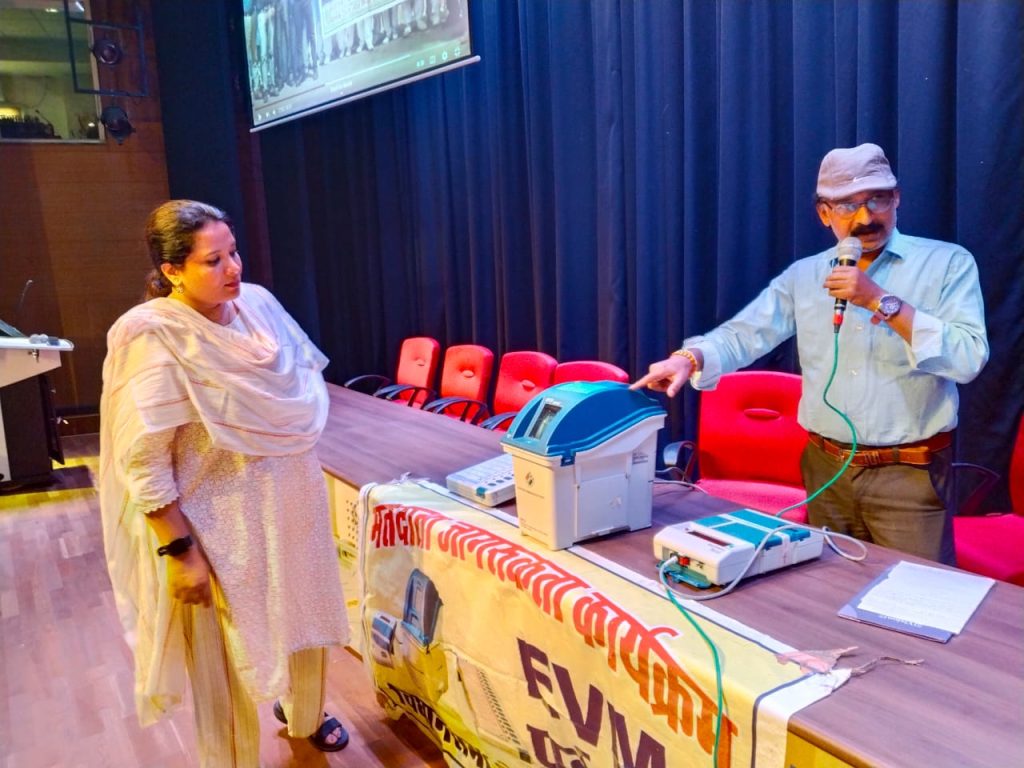 वहीं संयुक्त कलेक्टर संवाद विनायक शर्मा ने इलेक्ट्रॉनिक वोटिंग मशीन के तकनीकी पक्ष को विस्तार से समझाते हुए कहा कि यह अत्यंत सुरक्षित और निष्पक्ष है तथा मतदान कर्मियों का आगामी विधानसभा चुनाव को देखते हुए जागरूक होना एक महत्वपूर्ण कदम है उन्होंने इस अवसर पर संपूर्ण मतदान प्रक्रिया को भी स्पष्ट किया। वही स्वीप प्रभारी मास्टर ट्रेनर शिक्षक महेंद्र कुमार पटेल एवं अरविंद कुमार वैष्णव ने ईवीएम में डेमो मतदान करवाते हुए सब के अनुभव भी शेयर किए और प्रोजेक्टर के माध्यम से जागरूकता गीतों को प्रदर्शित कर लोकतांत्रिक मतदान शपथ करवाई।