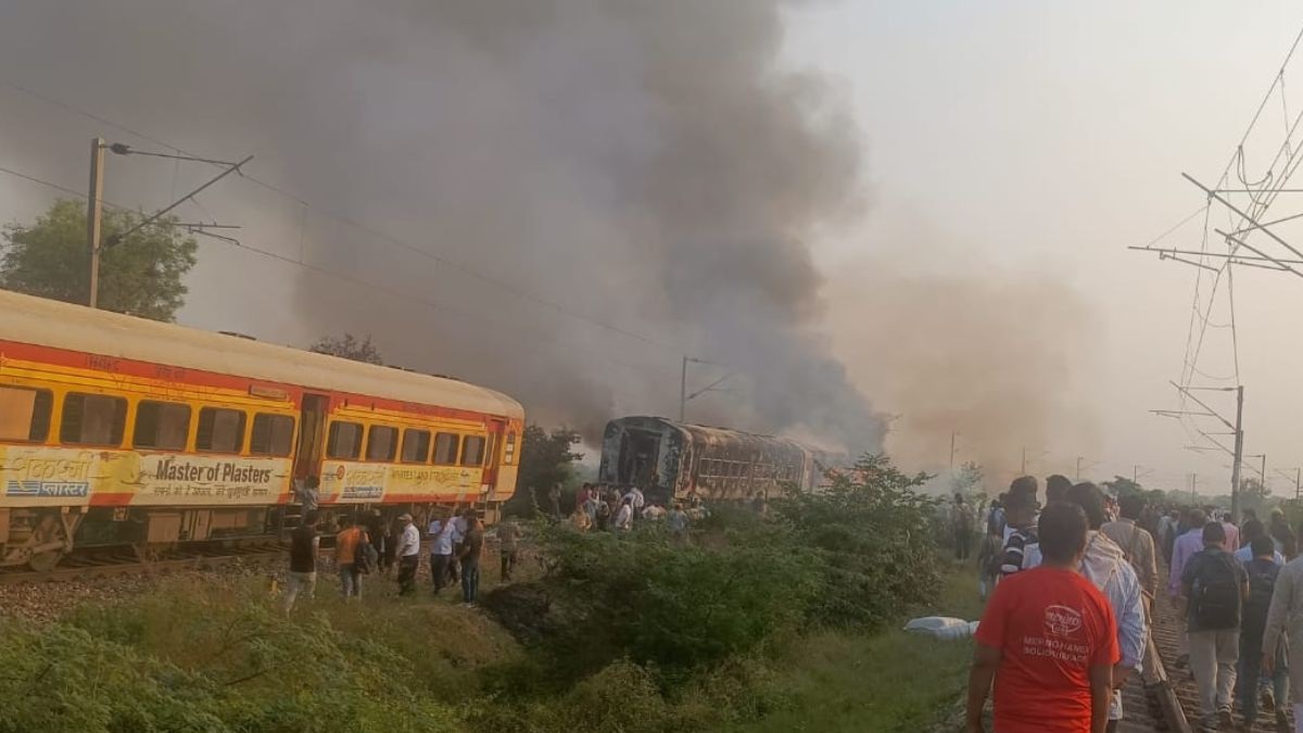 धमाके के बाद एक्सप्रेस की दो बोगियों में लगी आग, यात्रियों ने कूदकर बचाई जान