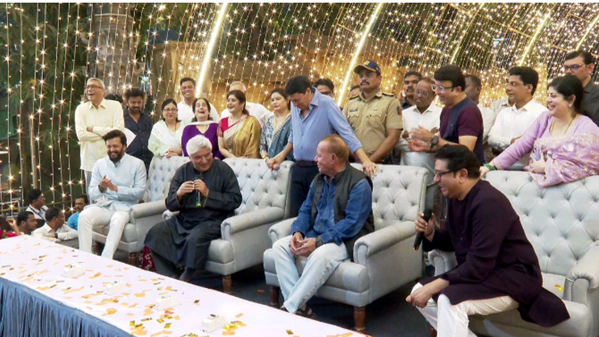 पूरे देश में दिवाली की धूम है। चारों तरफ दिए, लाइटें प्रज्वलित हो रही हैं। छुट्टियाँ शुरू हो चुकी हैं। लोग अपने घरों के लिए निकल पड़े हैं। जगह-जगह पर दीपोत्सव के कार्यक्रम आयोजित हो रहे हैं। इसी क्रम में आज शुक्रवार को मनसे नेता राज ठाकरे ने भी हर वर्ष की तरह इस वर्ष भी दीपोत्सव कार्यक्रम आयोजित किया। इस कार्यक्रम में मुख्य अथिति के तौर पर मशहूर लेखक जावेद अख्तर और सलमान खान के पिता सलीम खान आए हुए थे। इन दोनों लेखकों की जोड़ी सार्वजनिक मंच पर बड़े वर्षों के बाद दिखी।