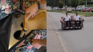 सोशल मीडिया पर हर दिन अनगिनत वीडियो वायरल होते रहते हैं। मगर कुछ ही वीडियो ऐसे होते हैं जो लोगों का ध्यान अपनी तरफ खींच पाते हैं। यह वीडियो भी कुछ ऐसा ही है। वायरल हो रहे वीडियो में आप देख सकते हैं कि एक शख्स सोफे का कुशन उठाता है और उसमें पेट्रोल भरता है। इसके बाद वह उसका इंजना चालू करता हुआ दिखाई देता है। इसके बाद का नजारा और भी मजेदार है। शख्स अपने किसी दोस्त के साथ सोफे पर बैठता है और ट्रैवल करने सड़क पर निकल जाता है। लोगों को यह वीडियो काफी पसंद आ रहा है। सोफे की बेच में एक हैंडल भी लगा हुआ है, जिससे ब्रेक और दिशा कंट्रोल किया जा सकता है।