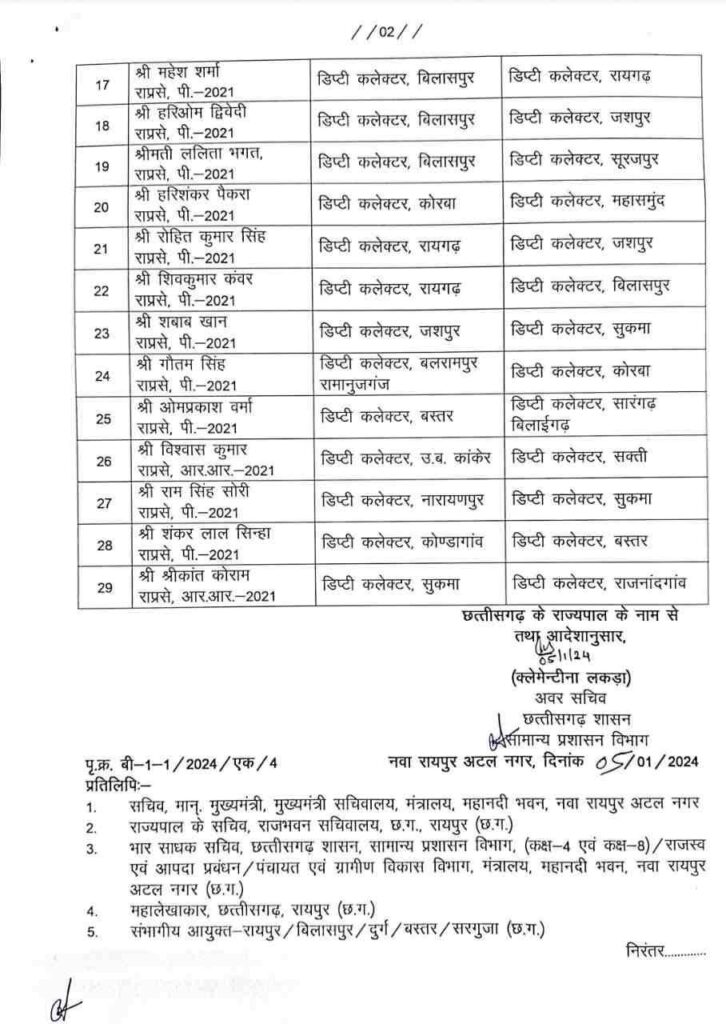 छत्तीसगढ़ में 29 राज्य सेवा के अफसरों का तबादला, सामान्य प्रशासन विभाग ने जारी किया आदेश..देखें लिस्ट