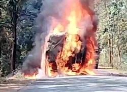 रायपुर। द बर्निंग ट्रक… जी हां अब जो हम बताने जा रहे है वो यह है कि एक चलती ट्रक अचानक आग की लपटों से घिर गई। इस घटना में ड्राइवर और हेल्पर ने कूदकर अपनी जान बचा ली। यह घटना छत्तीसगढ़ के सुकमा जिले की है जहां चलती ट्रक में टायर फटने के बाद भीषण आग लग गई। जिसके बाद ड्राइवर और हेल्पर ने गाड़ी से कूदकर अपनी जान बचाई। आग लगने का कारण टायर फटना बताया जा रहा है। सुकमा जिला के पकेला के पास एनएच 30 में ये घटना हुई है।