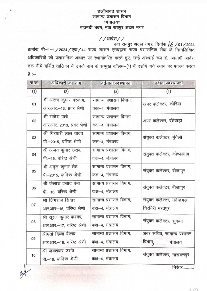 सामान्य प्रशासन विभाग के अधिकारियों की नई पदस्थापना, देखें आदेश…
