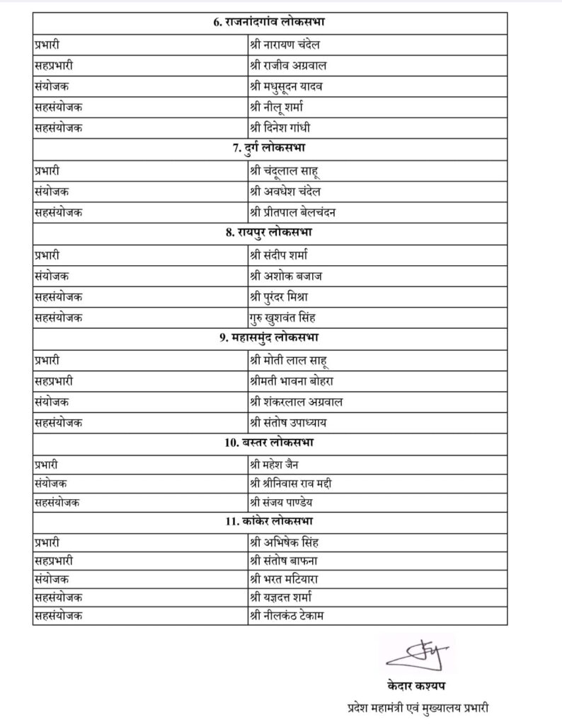 लोकसभा चुनाव के लिए भाजपा ने नियुक्त किए प्रभारी, सह प्रभारी व संयोजक