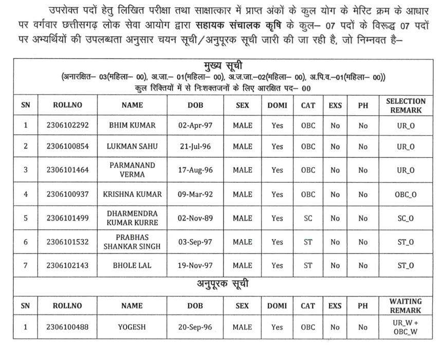 BREAKING NEWS सीजी पीएससी ने जारी की सहायक संचालक कृषि की चयन सूची…