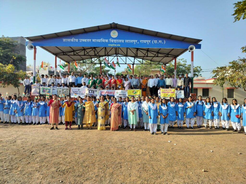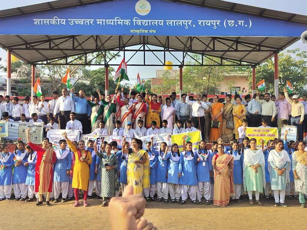 कलेक्टर एवं जिला निर्वाचन अधिकारी डॉ. गौरव कुमार सिंह के मार्गदर्शन तथा मुख्य कार्यपालन अधिकारी एवं नोडल अधिकारी “स्वीप”श्री विश्वदीप के नेतृत्व में तथा स्वामी आत्मानंद शासकीय उच्चतर माध्यमिक विद्यालय – लालपुर (रायपुर) की प्राचार्य अंजुलता सारस्वत के निर्देशानुसार लोकसभा आम निर्वाचन 2024 हेतु “चुनाव का पर्व, देश का गर्व” टेगलाईन से “मतदाता शपथ” व “मैं भारत हॅू-भारत है मुझमें….” गीत के अभिनय से “मतदाता जागरूकता अभियान का आगाज किया गया, लगभग 500 बच्चों को प्रभारी प्राचार्य सुषमा कुलकर्णी ने “मतदाता शपथ” दिलाकर, नये मतदाता को “मतदान” करने हेतु प्रेरित की।