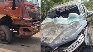BREAKING NEWS छत्तीसगढ़ : शिवनाथ पुल पर ट्रक से टकराई कार… महिला की मौत…