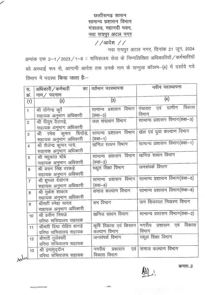 सचिवालय सेवा के अधिकारियों-कर्मचारियों का ट्रांसफर, देखें सूची…