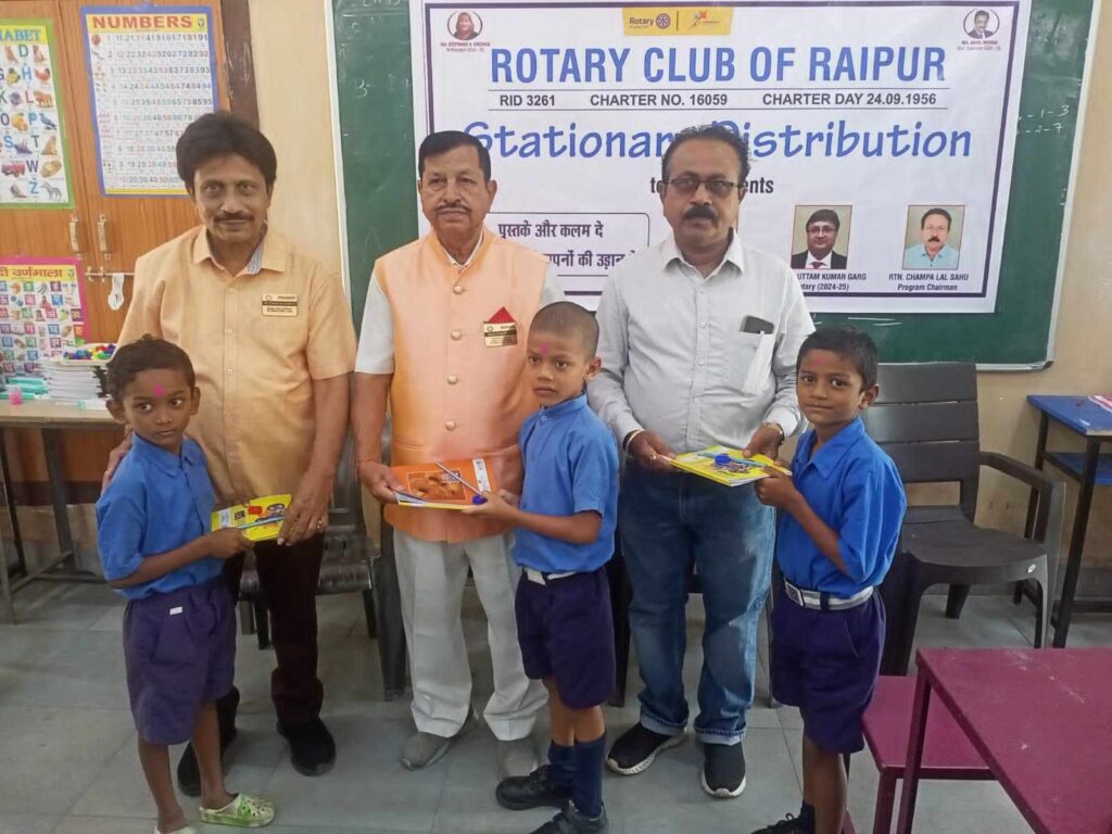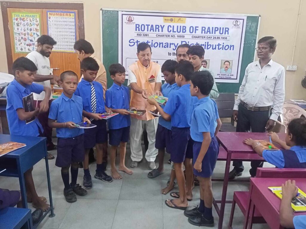 रोटरी क्लब ऑफ रायपुर के द्वारा शासकीय प्राथमिक विद्यालय बुढापारा के 60 नवप्रवेशी छात्र छात्राओं को तिलक लगाकर पाठ्य सामग्री वितरीत की गई । रोटरी अध्यक्ष नामो चन्द मोरयानी ने इस अवसर पर बच्चों को रोटरी क्लब के उद्देशयों और सेवाओं की जानकारी प्रदान की । कार्यक्रम के प्रोजेक्ट चेयरमैन चंपालाल साहू ने छात्र छात्राओं से अपने गुरुजनों के मार्गदर्शन में अच्छी पढ़ाई करने व गुरुओं का आदर करने के लिए प्रोत्साहित किया । सिटी को ऑर्डिनेटर रायपुर प्रदीप गोविंद शितूत ने इस अवसर पर छात्र छात्राओं को उनके सुखद और उज्जवल भविष्य की शुभकामनाएं दी । अंत में क्लब के द्वारा सभी को पाठ्य सामग्री का वितरण किया गया। इस अवसर पर शाला के प्रधान अध्यापक सहित सभी शिक्षक शिक्षिकाएं उपास्थित थे ।