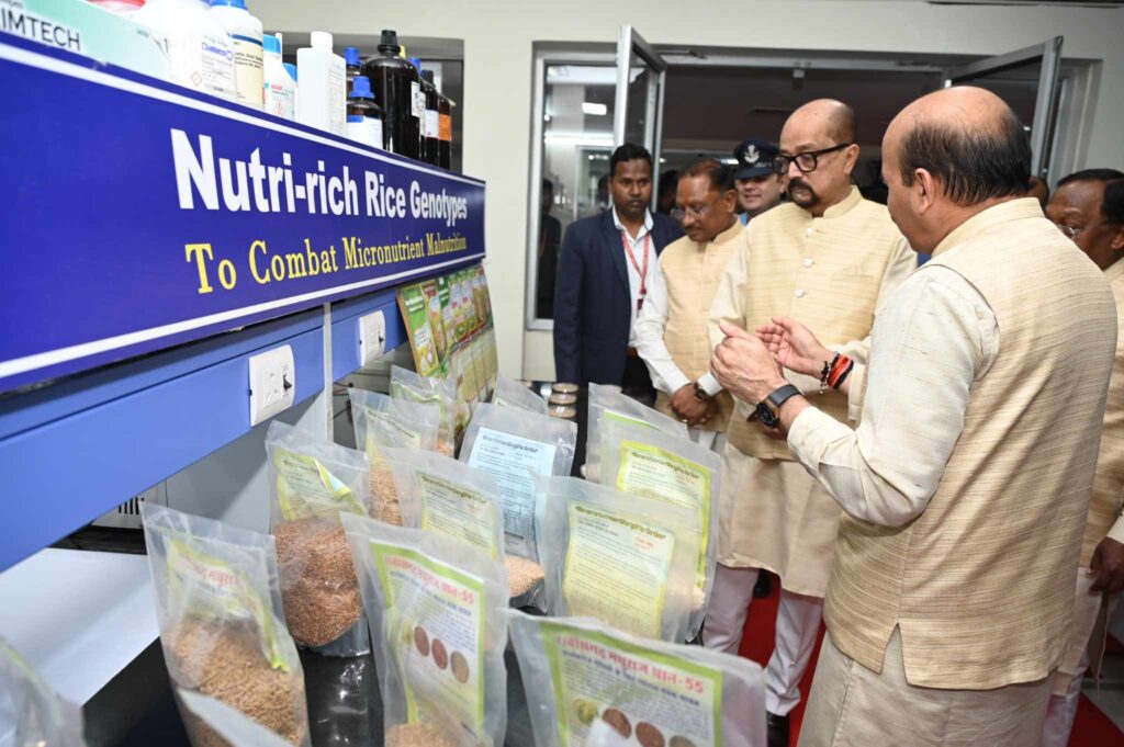 दीक्षांत समारोह में शामिल होने के पूर्व राज्यपाल श्री रमेन डेका तथा मुख्यमंत्री श्री विष्णुदेव साय ने इंदिरा गांधी कृषि विश्वविद्यालय परिसर में संचालित अनुसंधान कार्यां, प्रौद्योगिकी विकास तथा उपलब्ध सुविधाओं का जायजा लिया। उन्होंने विश्वविद्यालय परिसर में स्थापित डॉ. आर.एच. रिछारिया रिसर्च लैब का अवलोकन किया तथा वहां उपलब्ध अनुसंधान सुविधाओं की जानकारी ली। उन्होंने वहां भारत के सबसे बड़े तथा विश्व के दूसरे सबसे बड़े धान जनन द्रव्य संग्रह का अवलोकन किया। कुलपति डॉ. गिरीश चंदेल ने उन्हें बताया कि इस जर्मप्लाजम सेन्टर में चावल की 23 हजार 250 परंपरागत किस्मों के जनन द्रव्य को संग्रहित तथा संरक्षित किया गया है। इनमें से कई किस्में औषधीय तथा पोषक गुणों से भरपूर हैं। इन किस्मों का उपयोग धान की नई उन्नत किस्मों के विकास के लिए किया जा रहा है। इसके साथ ही यहां अन्य फसलों की 6 हजार से अधिक किस्मों का संरक्षण किया जा रहा है। राज्यपाल तथा मुख्यमंत्री ने रिसर्च लैब के अवलोकन के दौरान इसके विभिन्न अनुभागों का भ्रमण किया और विद्यार्थियों व रिसर्च स्कॉलरों के साथ चर्चा की।