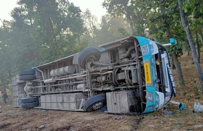जशपुर । बगीचा के ग्राम महनई के समीप साेमवार की शाम लगभग 5 बजे चालक की लापरवाही से तेज रफ्तार बस पलट गई. इस हादसे में 6 से ज्यादा लाेग घायल हुए हैं. घटना की सूचना मिलते ही सुलेसा पुलिस मौके पर पहुंची और घायलों को अस्पताल पहुंचाया, जहां सभी का इलाज जारी है. बताया जा रहा है कि बस बगीचा से कुसमी जा रही थी, जिसमें लगभग 50 यात्री सवार थे. बस बगीचा थाना क्षेत्र के चाैकी सुलेसा के ग्राम महनई के पास पलट गई. बताया जा रहा है कि बस चालक फाेन पर बात कर रहा था और लापरवाही पूर्वक गाड़ी काे चला रहा था, जिससे बस अनियंत्रित हाेकर पलट गई. इस हादसे में 6 से ज्यादा लोग घायल हुए हैं. सभी घायलाें काे बगीचा सामुदायिक स्वास्थ्य केंद्र भेजा गया।