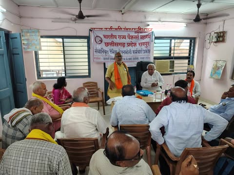 भारतीय राज्य पेंशनर्स महासंघ छत्तीसगढ़ प्रदेश सेवानिवृत दैनिक वेतनभोगी कर्मचारी प्रकोष्ठ की बैठक रविवार 1 जून 25 को रायपुर में मेरिन ड्राइव के निकट स्थित राज्य कर्मचारी संघ छत्तीसगढ़ के प्रांतीय कार्यालय में संपन्न हुआ। भारतीय राज्य पेंशनर्स महासंघ छत्तीसगढ़ प्रदेश के प्रांताध्यक्ष वीरेन्द्र नामदेव की उपस्थिति में बैठक की अध्यक्षता सेवानिवृत दैनिक वेतनभोगी कर्मचारी प्रकोष्ठ प्रदेश संयोजक अनिल पाठक ने की। बैठक में प्रदेश कोषाध्यक्ष बी एस दसमेर, जिला रायपुर के अध्यक्ष आर जी बोहरे, सरगुजा संभाग के अध्यक्ष गुरुचरण सिंह,विनोद जैन बिलासपुर आदि ने विचार व्यक्त किए। बैठक में छत्तीसगढ़ प्रदेश के अंबिकापुर,बिलासपुर, जांजगीर चांपा, रायगढ़, महासमुंद,गरियाबंद, दुर्ग, कवर्धा, बलौदाबाजार भाटापारा तथा रायपुर जिले प्रतिनिधि शामिल थे। बैठक में नियमित किए गए दैनिक वेतन भोगी कर्मचारियों की संपूर्ण सेवा अवधि को पेंशन के लिए गणना में लेने और उन्हें भी अन्य सेवानिवृत कर्मचारियों की भांति सभी आर्थिक लाभ अवकाश नगदीकरण व उपादान देने की सरकार से मांग की गई।