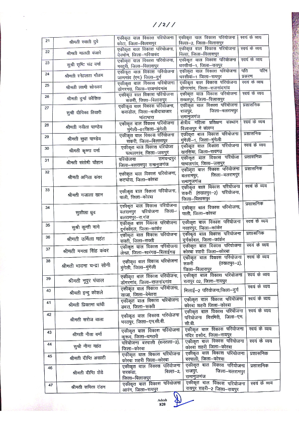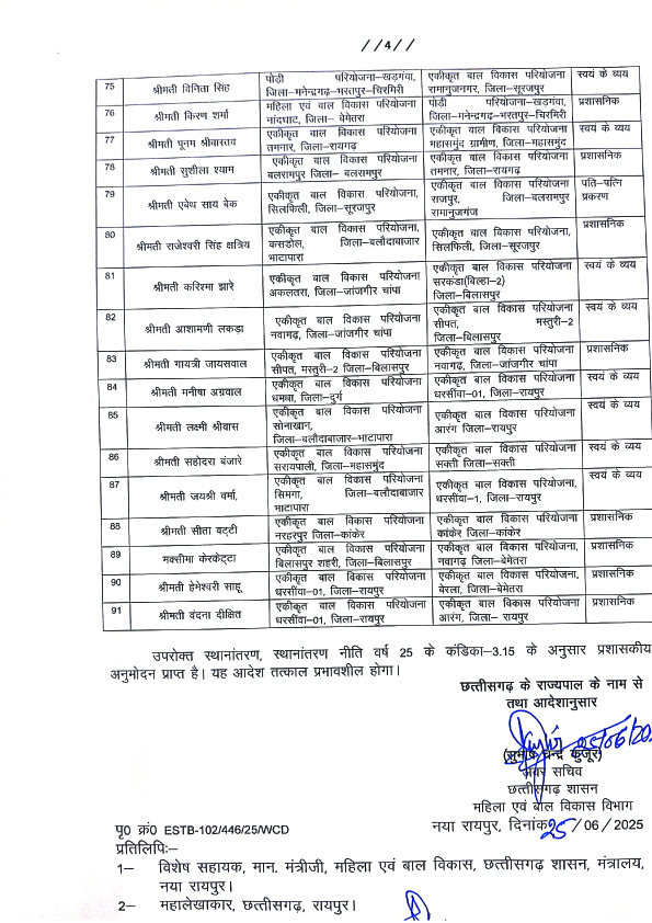 महिला एवं बाल विकास विभाग में बड़े पैमाने पर तबादला, देखें लिस्ट