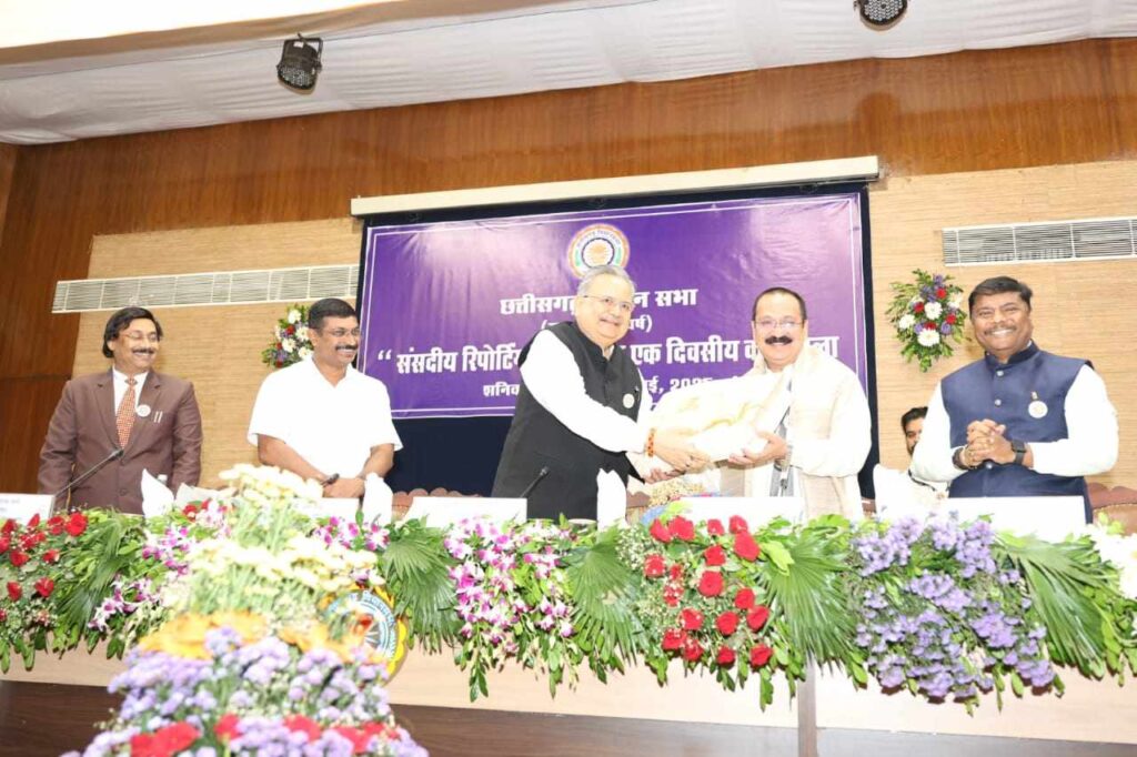 उन्हांने कहा कि-संसद का कानून मानना हर विधान मंडल की बाध्यता है । लेकिन कुछ राज्यों की विधान सभाऐं अपनी कार्यवाही स्वयं के तरीके से करती है, ऐसी स्थिति में संसदीय पत्रकारों के लिए रिपोर्टिंग का काम थोड़ा जटिल हो जाता है । उन्हांने कहा कि-जब कहीं तेजी से विकास होता है तो कुछ लोग उसे रोकने का प्रयास भी करते हैं लेकिन इसके पश्चात भी हमोर देश नें विश्व गुरू बनकर अपनी उत्तरोत्तर स्वीकार्यता का प्रमाण प्रस्तुत किया है । इस अवसर पर दोनो प्रमुख वक्ताओं डॉ. संजय द्विवेदी, पूर्व निदेशक, भारतीय जन संचार संस्थान एवं प्रोफेसर माखन लाल चतुर्वेदी, राष्ट्रीय पत्रकारिता विश्व विद्यालय, भोपाल एवं डॉ. सुधांशु त्रिवेदी, सांसद, राज्यसभा का शाल, श्रीफल से सम्मानित किया। कार्यक्रम के अंत में संसदीय कार्यमंत्री श्री केदार कश्यप ने सभी मान. अतिथियों एवं मीडिया प्रतिनिधियों का आभार व्यक्त किया गया।