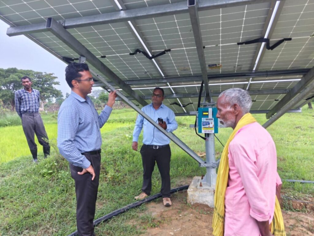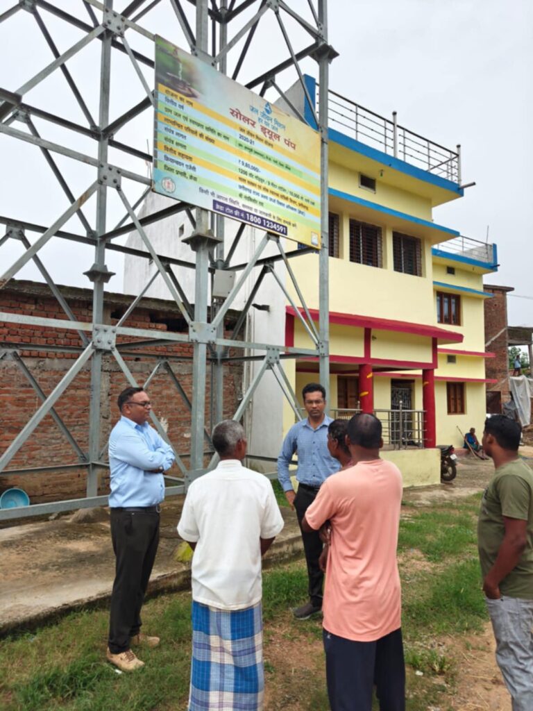 तत्पश्चात् श्री राणा द्वारा कटघोरा विकासखण्ड ग्राम रंजना में सौर सुजला योजनांतर्गत स्थापित हितग्राही जगेश्वर मरकाम के यहॉ स्थापित 03 एच.पी. सबमर्सिबल सौर पम्प का निरीक्षण किया गया, हितग्राही द्वारा अवगत कराया गया कि उनके यहॉ स्थापित सौर संयंत्र स्थापना के बाद से अब तक यह सुचारू रूप से कार्यशील है। उनसे यह पुछे जाने पर कि इस सोलर पम्प में किसी प्रकार की समस्या आने पर आप क्या करोगे? इस रंजन द्वारा बताया गया कि मेरे द्वारा सौर समाधान एप्प डाउनलोड किया गया है, जिसकी मदद से मै सोलर पम्प में किसी भी प्रकार की समस्या आने पर अपनी शिकायत दर्ज कर सकता हूॅ। इस पर क्रेडा सी.ई.ओ. श्री राणा द्वारा वहॉ उपस्थित क्रेडा के अधिकारियों को सौर समाधान एप्प के अधिकाधिक प्रचार के निर्देश दिये।