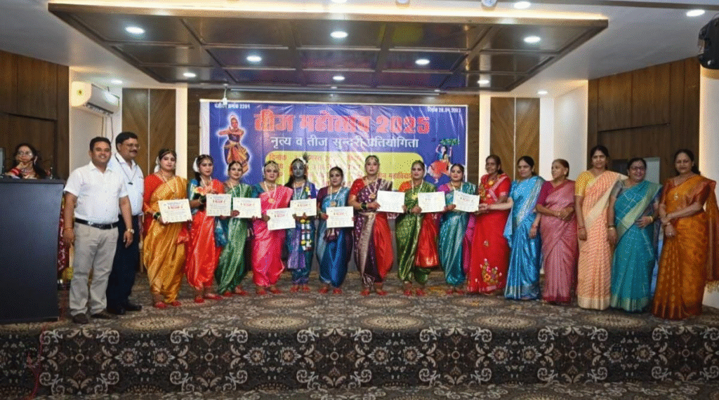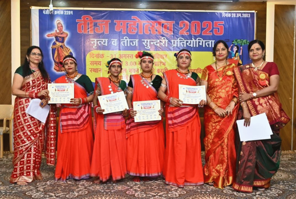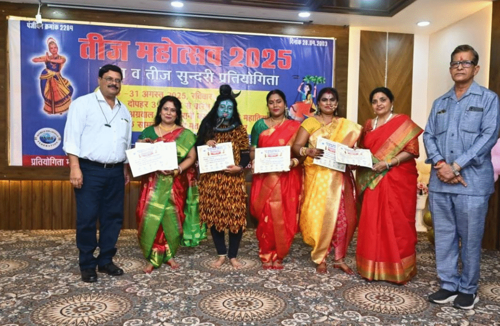 रायपुर. वर्ल्ड ब्राह्मण फेडरेशन छ.ग. एवं सर्व युवा ब्राह्मण परिषद छ.ग. द्वारा विगत वर्षों की भाँति प्रदेश की विप्र महिलाओं, युवतियों को पूर्णतः सांस्कृतिक मंच प्रदान करने “तीज महोत्सव” का आयोजन अग्रवाल भवन, पुरानी बस्ती में किया गया. प्रतिभागियों ने समूह, एकल नृत्य, तीज सुंदरी की प्रस्तुति दी.