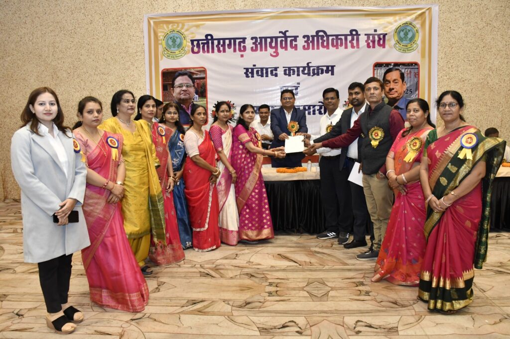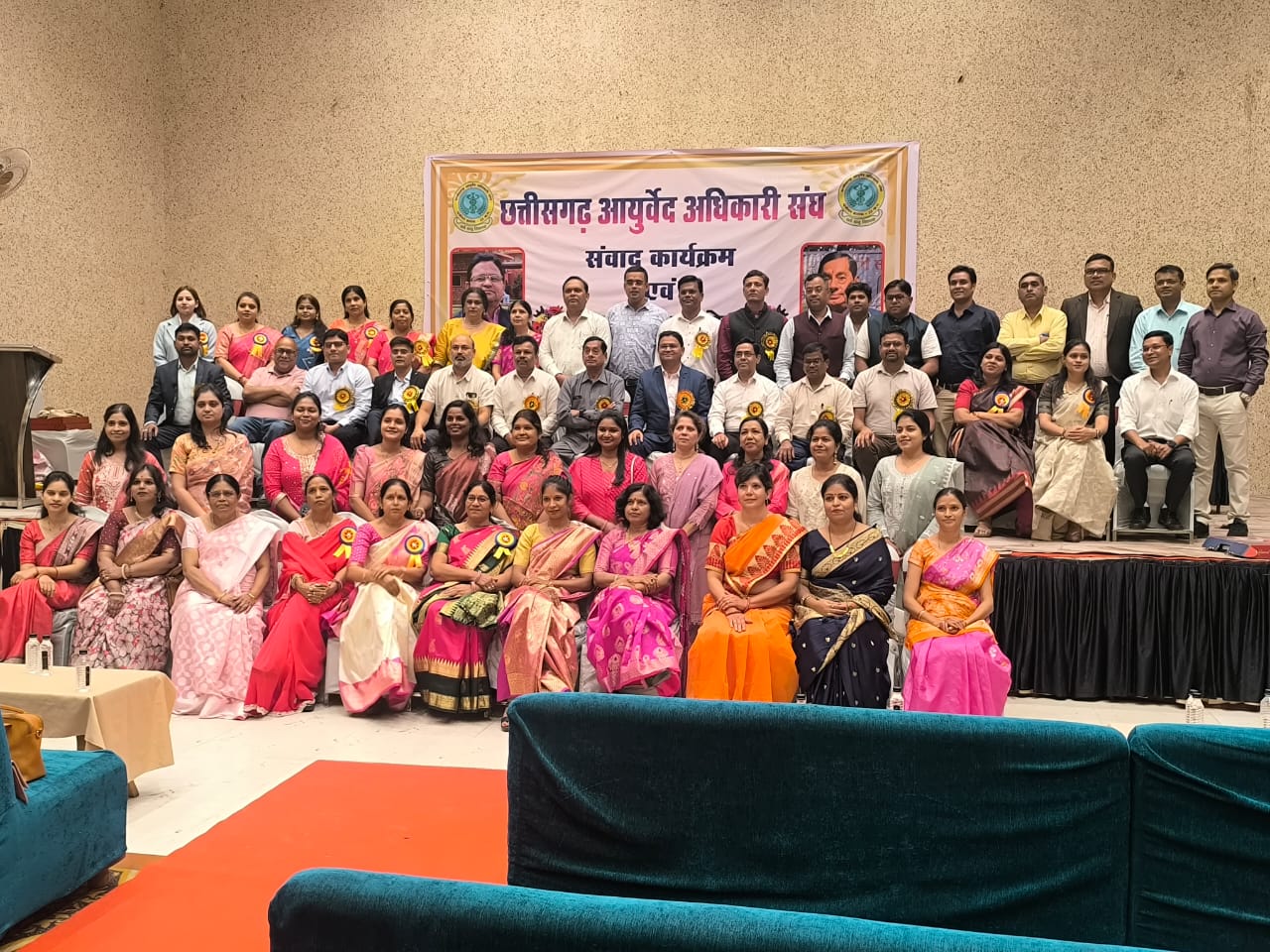 . विगत दिवस को रजवाड़ा रिजॉर्ट, व्ही.आई.पी.रोड में छत्तीसगढ़ आयुर्वेद अधिकारी संघ जिला शाखा रायपुर के आयुष चिकित्सकों द्वारा छत्तीसगढ़ आयुर्वेद अधिकारी संघ के नवनिर्वाचित प्रांताध्यक्ष डॉ. गदाधर पंडा, संघ के संरक्षक डॉ. परस शर्मा एवं नवगठित प्रांतीय कार्यकारिणी समिति का सम्मान किया गया। साथ ही प्रांताध्यक्ष एवं प्रांतीय कार्यकारिणी के सदस्यों के साथ रायपुर जिला के आयुष चिकित्सकों के संवाद का कार्यक्रम भी रखा गया।