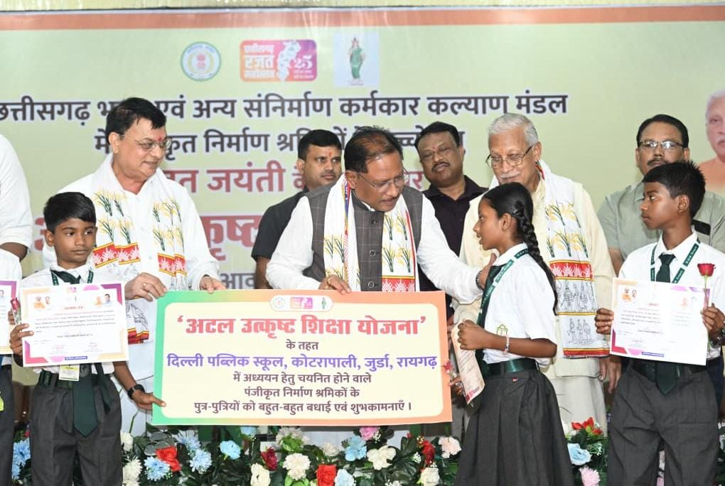 इस अवसर पर मुख्यमंत्री श्री साय ने कहा कि अटल उत्कृष्ट शिक्षा योजना से निर्माण श्रमिकों के बच्चों के लिए बेहतर शिक्षा का मार्ग प्रशस्त हुआ है। श्री साय ने घोषणा की कि अगले शैक्षणिक सत्र से इस योजना का लाभ 200 बच्चों को मिलेगा।