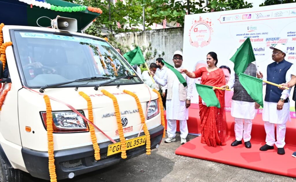 मुख्यमंत्री श्री विष्णु देव साय ने आज प्रधानमंत्री श्री नरेंद्र मोदी के जन्मदिवस के अवसर पर राजधानी रायपुर स्थित पंडित जवाहरलाल नेहरू मेडिकल कॉलेज परिसर में “स्वच्छता ही सेवा 2025 पखवाड़ा” का शुभारंभ किया। इस अवसर पर उन्होंने रायपुर नगर निगम और अन्य नगरीय निकायों की स्वच्छता को समर्पित डोर-टू-डोर कचरा कलेक्शन वाहनों को हरी झंडी दिखाकर रवाना किया।