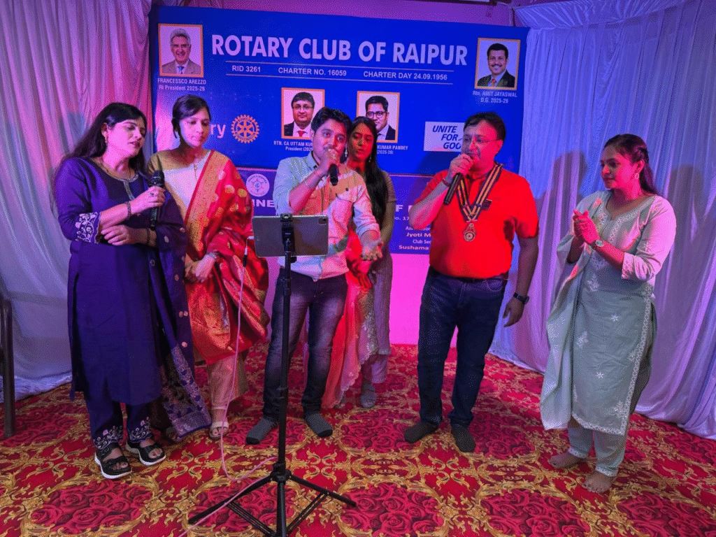इसी परंपरा को अध्यक्ष उत्तम गर्ग आगे बढ़ा रहे हैं । मैं रोटरी क्लब के रायपुर में स्थापना दिवस के अवसर पर सभी रोटेरियनो को शुभकामनाएं देते हुए आगे भी समाज सेवा में अग्रणी रहने की कामना करता हूं । कार्यक्रम के चेयरमैन आई बी एस बत्रा ने स्थापना दिवस पर क्लब की नई सदस्य विनीता राठौर एवं प्रभु नानजियानी ग्रुप द्वारा सुंदर संगीत संध्या के आयोजन पर प्रशंसा करते हुए कहा कि आप सेवा के क्षेत्र में बहुत आगे जायेंगी । इस अवसर पर क्लब के सभी गणमान्य सदस्य सपरिवार उपस्थित रहे । क्लब सचिव राकेश पांडे ने मुख्य अतिथि सहित क्लब सदस्यों उनके परिजनों एवं म्यूजिकल ग्रुप का आभार व्यक्त किया ।