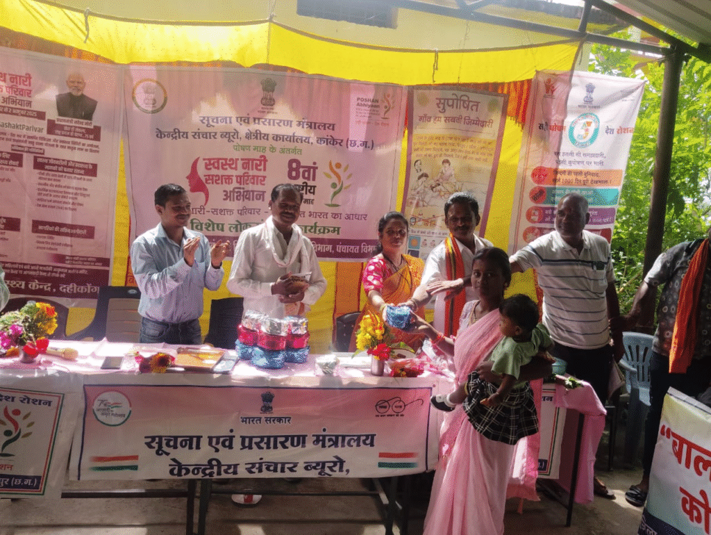 केंद्रीय संचार ब्यूरो क्षेत्रीय कार्यालय कांकेर द्वारा कोंडागांव जिले के अंतिम छोर पर बसे घोड़ागांव गांव में आज पोषण माह के अंतर्गत विशेष लोकसंपर्क कार्यक्रम का आयोजन किया गया। इस कार्यक्रम में ग्रामीणों की बड़ी संख्या में भागीदारी रही। आयोजन का उद्देश्य ग्रामीण अंचल के अंतिम व्यक्ति तक शासन की योजनाओं की जानकारी पहुँचाना और पोषण संबंधी जागरूकता को सशक्त बनाना था।