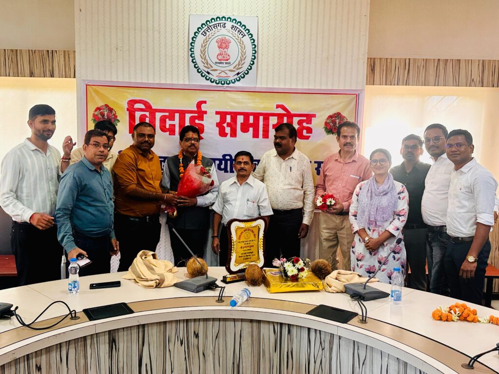 संघ द्वारा मंत्रालय ससेवा के 2 अधिकारियों श्री मोहर साय कुजूर, अवर सचिव एवं श्री दुर्गा चरण शुक्ला, अनुभाग अधिकारी को भी विदाई दिया गया।
