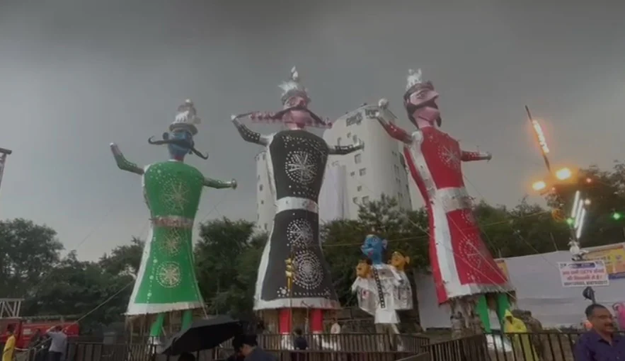देशभर में आज दशहरे का जश्न मनाया जा रहा है. शाम ढलते ही देश के कोने-कोने में रावण के पुतलों का दहन होने लगा है. आतिशबाज़ियों की गूंज, जयकारों की आवाज़ और लपटों में सिमटती बुराई. हर साल की तरह इस बार भी दशहरा अच्छाई की जीत का साक्षी बना. जब रावण के पुतलों में आग लगी तो बच्चों की आंखों में उत्साह, बुज़ुर्गों के चेहरों पर संतोष और हर किसी को यही संदेश मिल रहा था कि बुराई चाहे कितनी भी बड़ी हो, अंत उसका तय है. अबकी बार रावण सिर्फ बुराई से नहीं, बादलों से भी हार गया. हर साल दशहरे पर जब शाम ढलने लगती है, तो आसमां में आतिशबाज़ियों की चमक और धूमधड़ाका, मैदानों में रावण के जलते पुतलों की लपटें दिखाई देती हैं, लेकिन इस दफा इंद्रदेव की मेहरबानी की वजह से रावण जलने से पहले ही गल गया. लेकिन फिर भी रावण का पुतला धू-धू कर जला