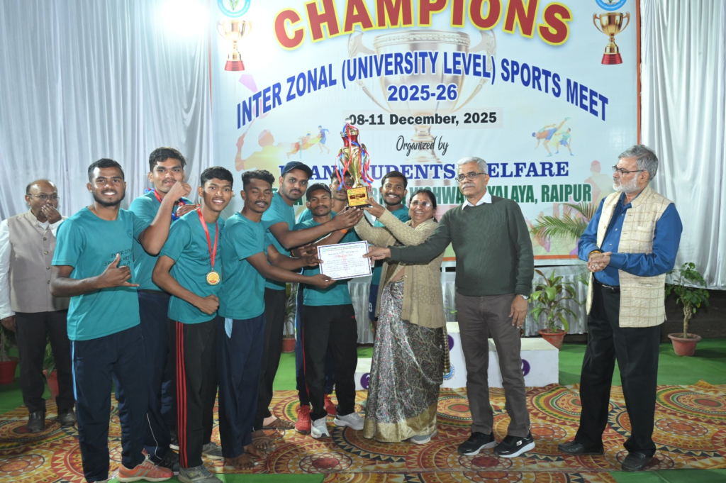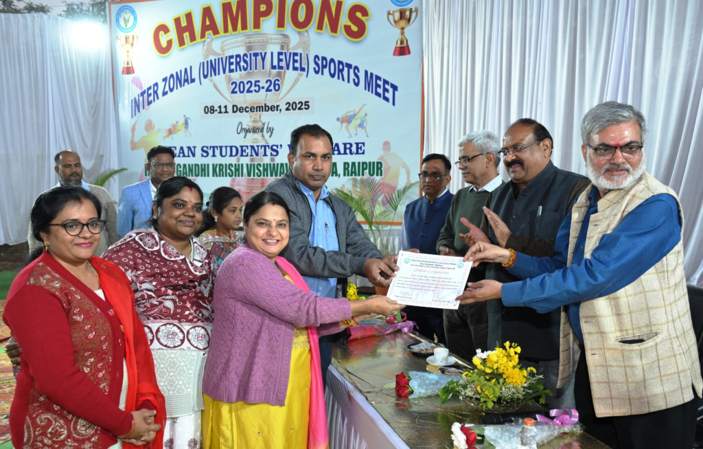 रायपुर- इंदिरा गांधी कृषि विश्वविद्यालय, रायपुर में 08 से 11 दिसम्बर 2025 तक आयोजित विश्वविद्यालयीन चार दिवसीय खेल कुम्भ का कल यहां समापन हुआ। कृषि महाविद्यालय, रायपुर के स्पार्ट्स कॉम्पलैक्स में चार दिवसीय खेल कुम्भ के समापन समारोह के मुख्य अतिथि डॉ. एस.एस. सेंगर ने विभिन्न खेल स्पर्धाओं में विजेता प्रतिभागियों को पुरस्कार एवं प्रमाण पत्र देकर सम्मानित किया।